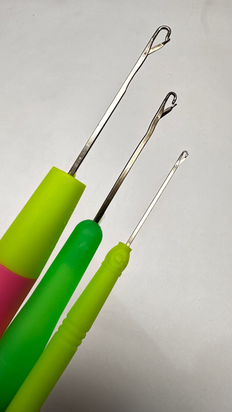 بسته به نوع و حجم موهای خود، و مدل باف سایز مناسب قلاب را انتخاب کنید که بيشتر سايز بزرگ مخصوص بافت آفرو و سايز متوسط مخصوص بافت اکستنشن و سايز کوچک بيشتر براي بافت دندون موشي: برای موهای نازک از سایز کوچک و برای موهای ضخیم از سایز بزرگ استفاده کنید.